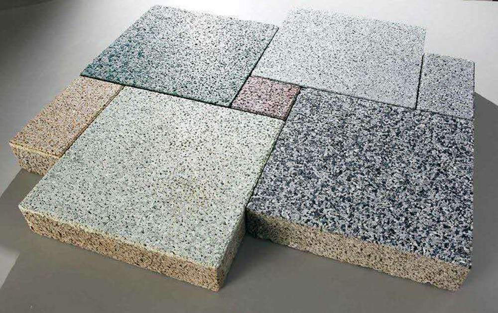 色彩丰富、可仿制各种类花岗岩的面层、肌理、质感,其效果完全可以与花岗岩媲美,根据设计的要求,在地面铺装跳色中表现很优异。